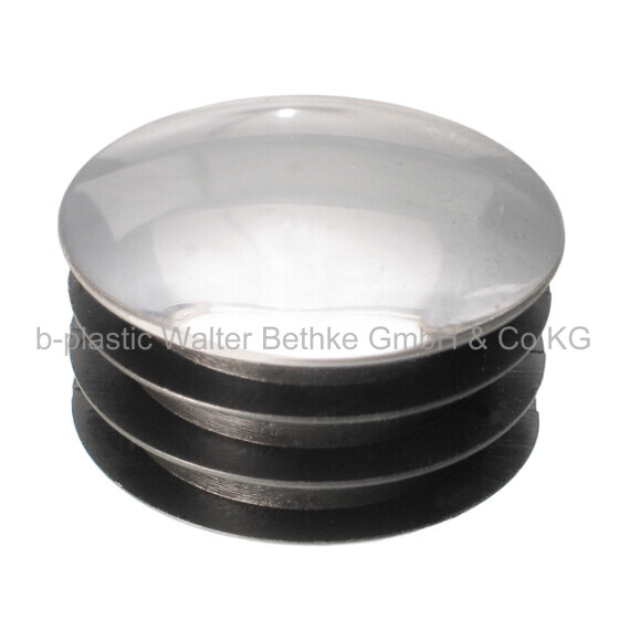 Sight plugs made of PE with chrome-/nickel-coloured metal cover for round tubes