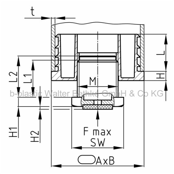 Adjustable feet made of PA 6 for flat oval tubes with one piece outer body, injection moulded thread and welded felt
