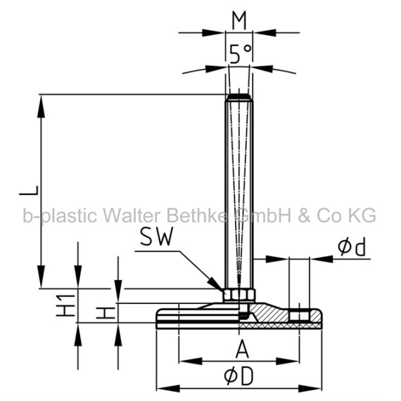 Machine feet made of zinced steel with two fixing holes and antislip-pad (A)