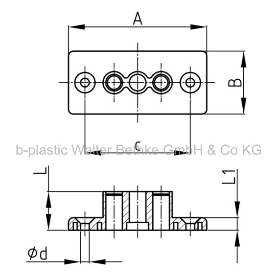Adapter made of PP for vertical connection of KBKCUB, KBKCMX, KBKPRO, KBKFLII and KBKCL cable chains to furniture