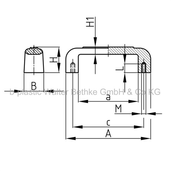 U-handle made of thermosetting plastic with corrugated surface and injected thread