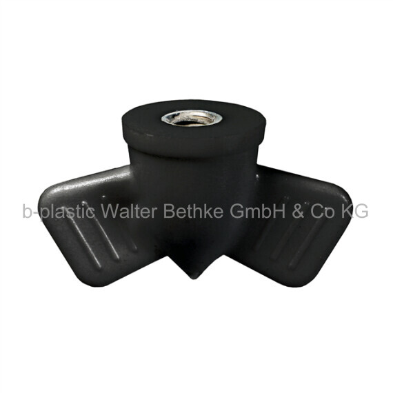 Wing nuts made of impact-resistant polystyrene with overmoulded threaded bush