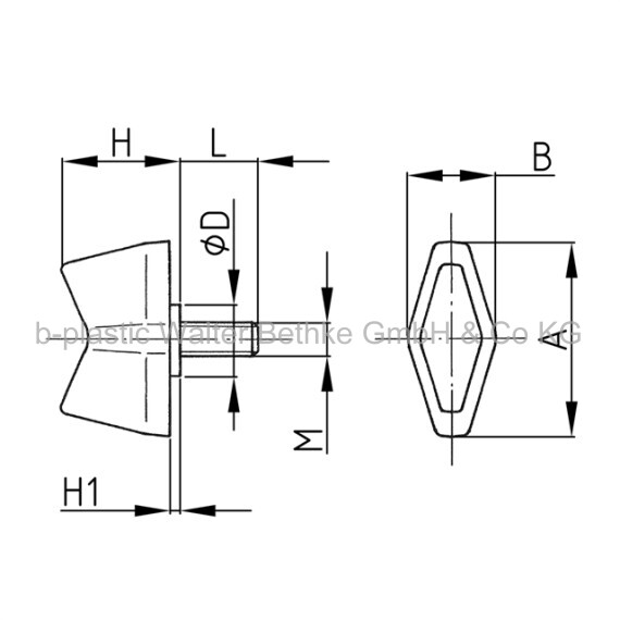 Wing screws made of PA 6 with threaded bolt (overmoulded)